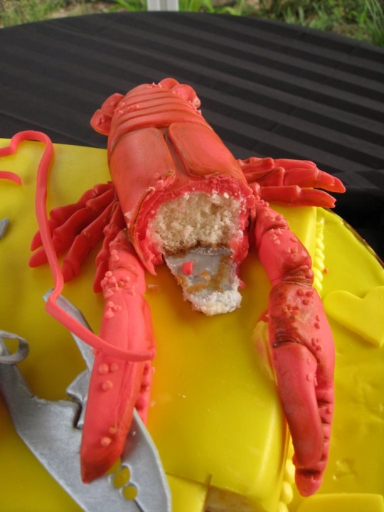 "Crayfish Crush." I thought it would be a cute design to sculpt and would not take too long to do. Ha! It still took me four days to get it finished!