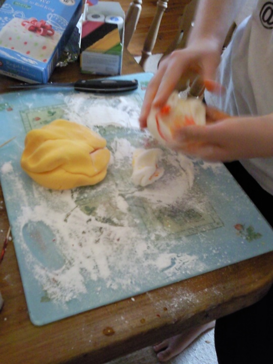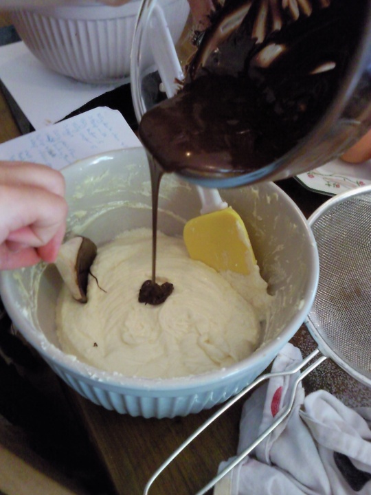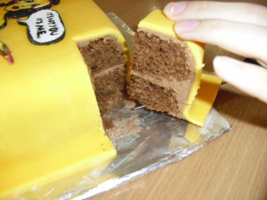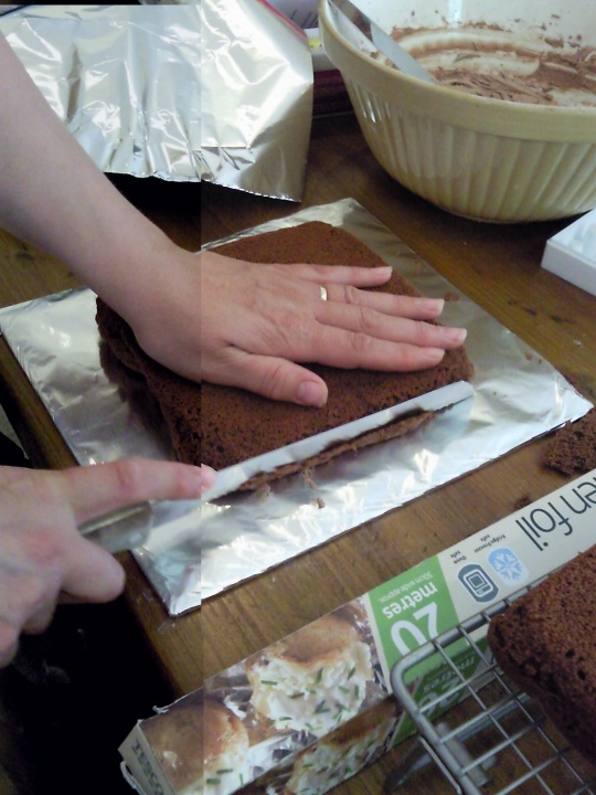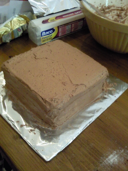 The sponge is a chocolate cake, covered and filled with chocolate orange butter cream. My mum thought Cointreau would be better than orange juice, so we kept adding it to the butter cream. It didn't taste very orangey, but it had plenty of alcohol!
